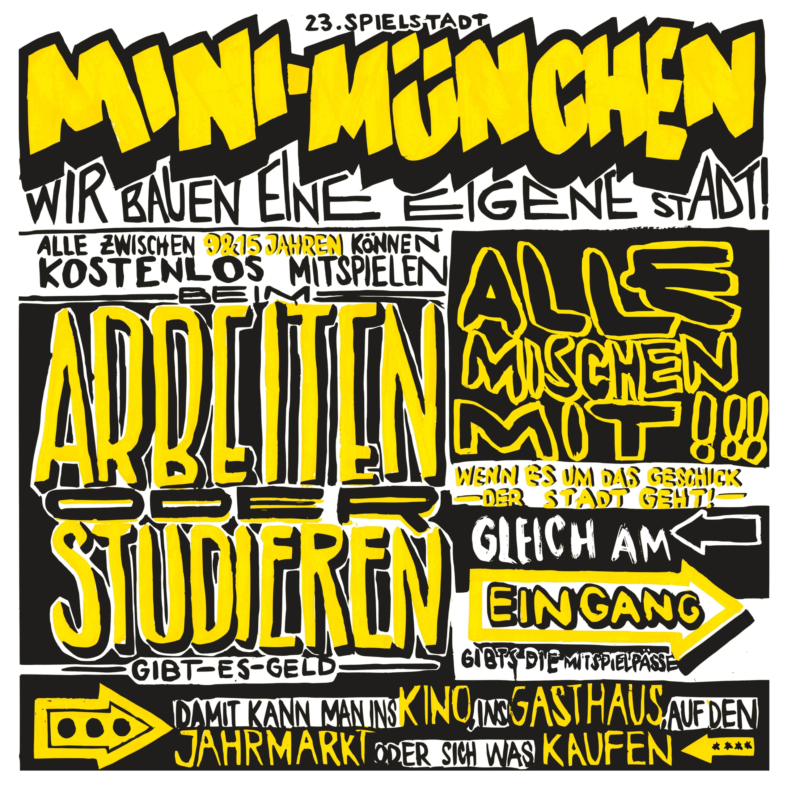 In der Spielstadt Mini-München können Kinder und Jugendliche im Alter von 9 bis 15 Jahren arbeiten, studieren, Geld verdienen, konsumieren, bauen, Freunde treffen, Politik machen und vieles mehr. Mini-München ist seit über 40 Jahren das größte Spiel- und Bildungsangebot der Stadt München, eines der bekanntesten kulturpädagogischen Projekte für Kinder in Deutschland und Vorbild für weit über 300 Spielstädte im In- und Ausland.